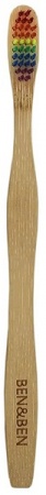 Szczoteczka do zębów jest wykonana z przyjaznego dla środowiska i trwałego bambusa moso. Tęczowe włosie szczoteczki wykonane jest wolnego od BPA nylonu, pochodzącego z recyklingu. Szczoteczka posiada średnią twardość włosia.