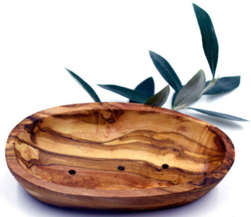 Mydelniczka wykonana z drzewa oliwnego. Zabezpieczona naturalnym olejem oraz woskiem dzięki czemu jest odporna na wilgoć. Posiada owalny kształt oraz otwory odprowadzające wodę, aby utrzymać mydło w czystości i suchości.