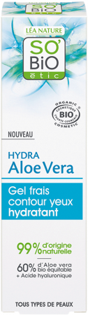 Zawiera 60% organicznego aloesu fair trade oraz kwas hialuronowy naturalnego pochodzenia. Odświeżający żel pod oczy ma lekką konsystencję, która idealnie nawilża i zmniejsza widoczność cieni pod oczami dla zapewnienia natychmiastowego od odświeżonego wyglądu. Do wszystkich typów skóry.