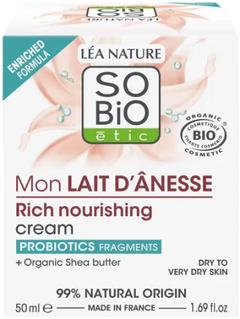 Dlatego aksamitny odżywczy krem Mon lait d'ânesse z oślim mlekiem So'Bio, dzięki swojej bogatej konsystencji przekształca się na skórze w skoncentrowane ekstrałagodne mleczko i pozostawia na niej pachnącą, cudownie jedwabistą powłokę.